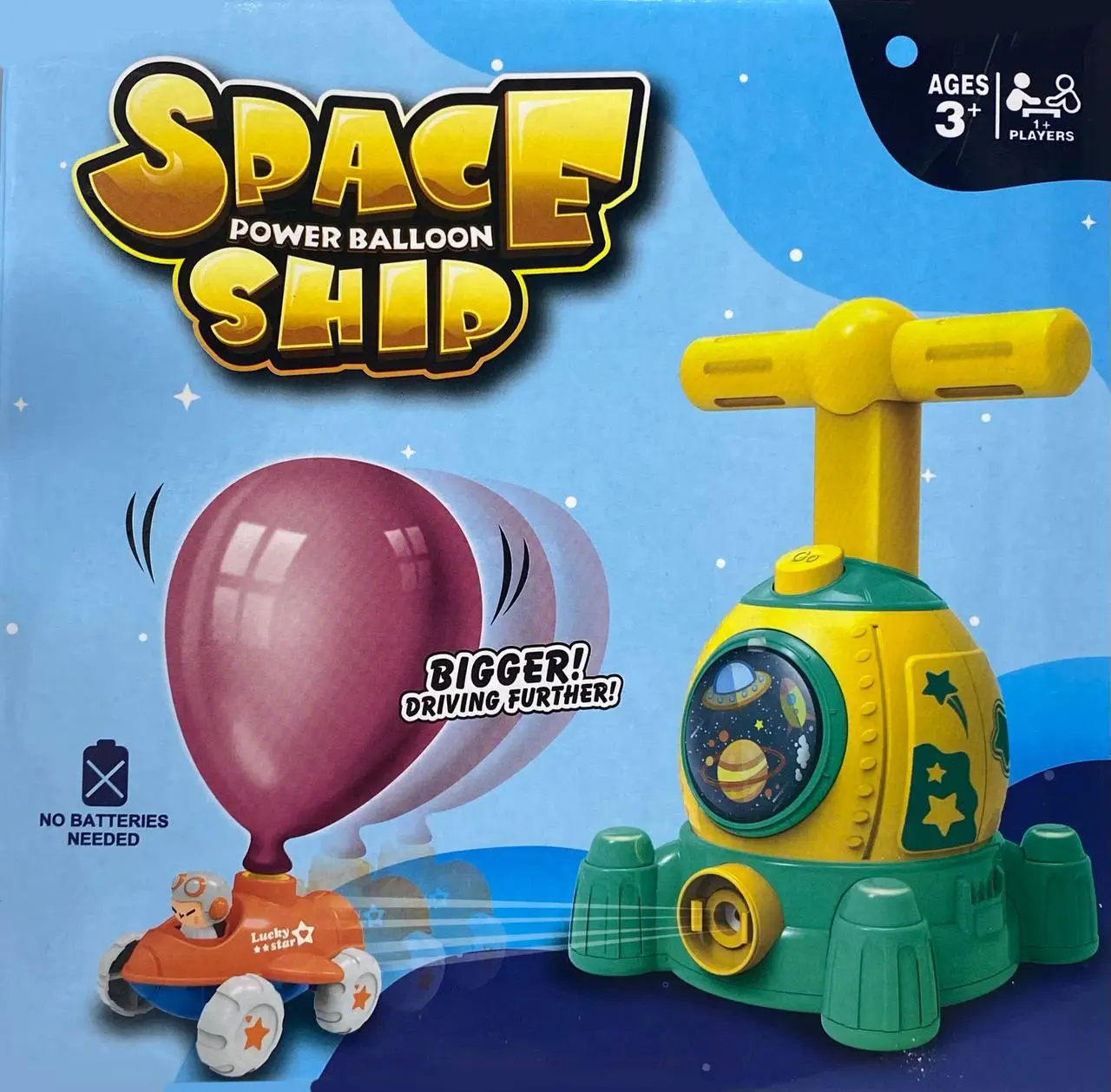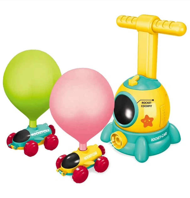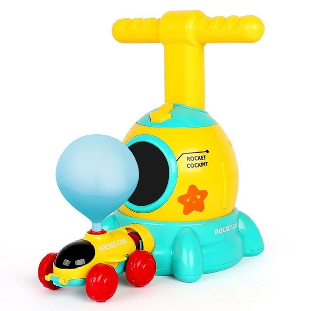 Надувайте кульку, опускаючи ручку донизу, після чого натискайте кнопку запуску і спостерігайте як захопливо злітає кулька або їздить машинка. Така гра сприяє розвитку соціальної взаємодії, дитячої логіки та мислення.